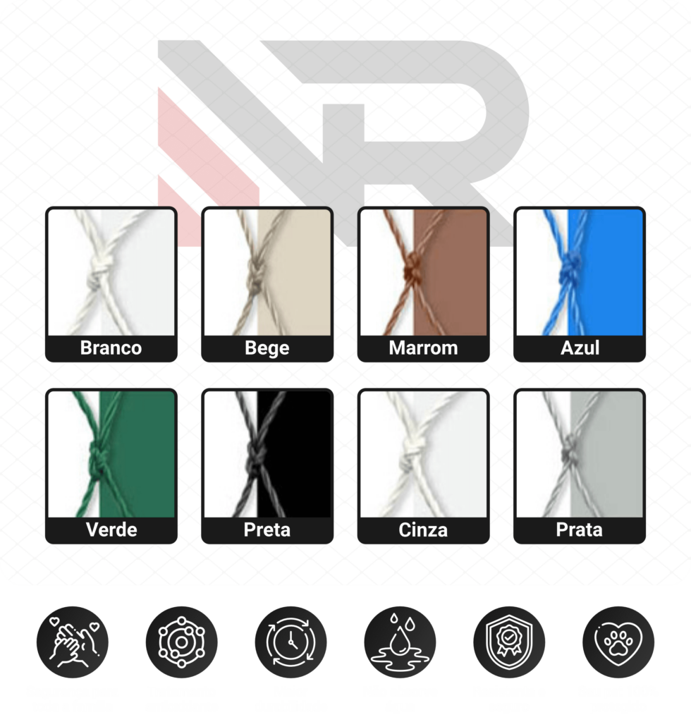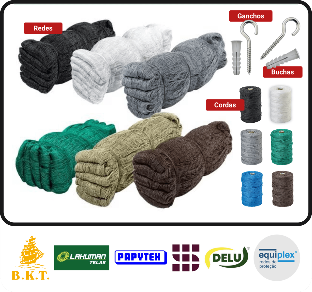 A Nanci Redes conta com o melhor material do mercado, utilizamos redes de proteção da melhor qualidade, com certificação e disponível em 8 cores. Materiais básicos como ganchos, buchas e cordas de alta qualidade para que haja um longo tempo de durabilidade. Sempre oferecemos garantia a nossos clientes.
